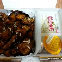달달한 치킨에 소스를 찍어먹어보니 단맛에 느끼한 맛이 추가된듯한 느낌을 받았어요~