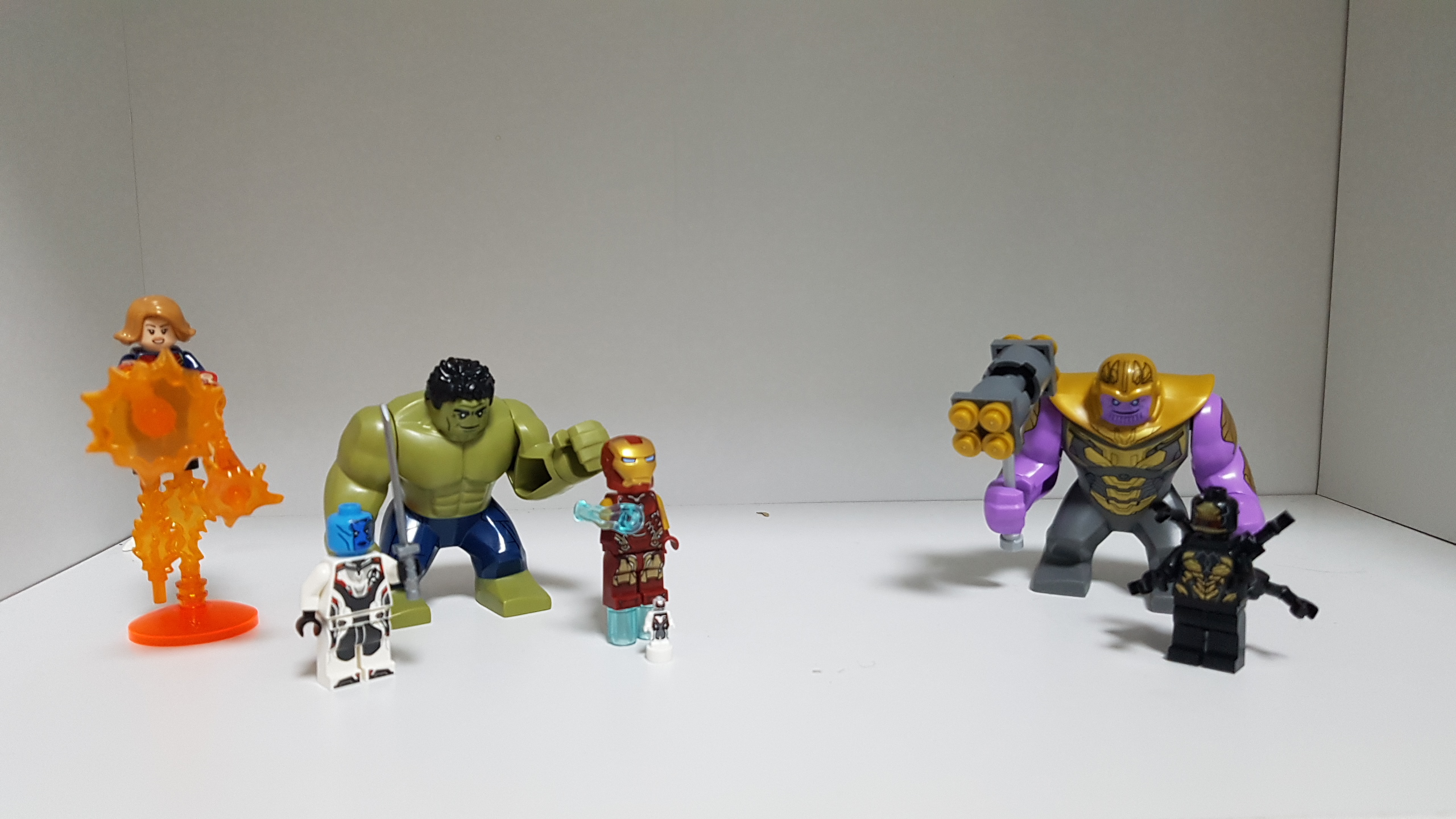 타노스와 헐크는 대형 피규어, 앤트맨은 초 미니피규어로 표현되어서