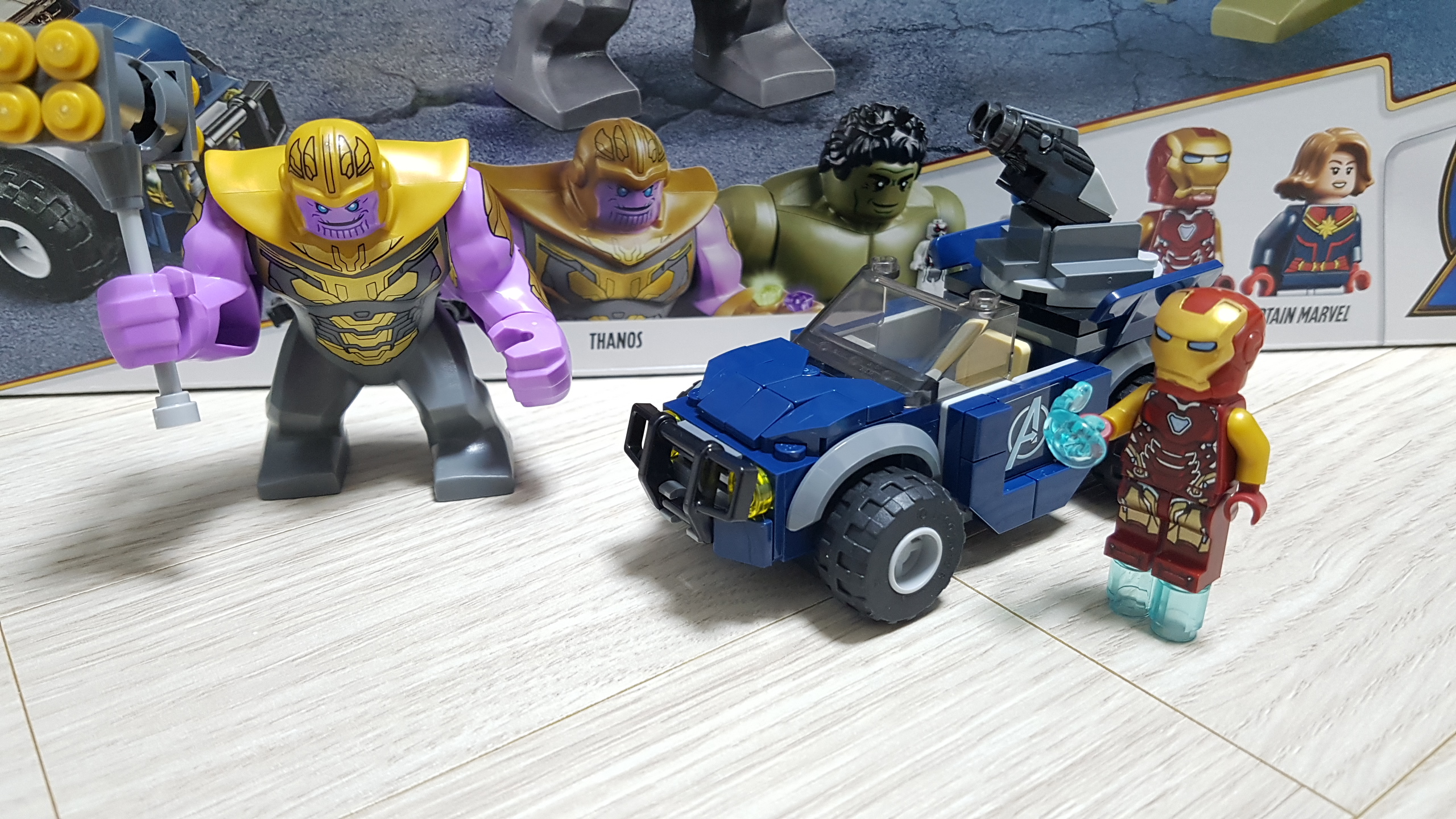 레고 76131 1번 봉지로 조립한 THANOS와 IRONMAN, 오프로드 자동차의 모습이에요