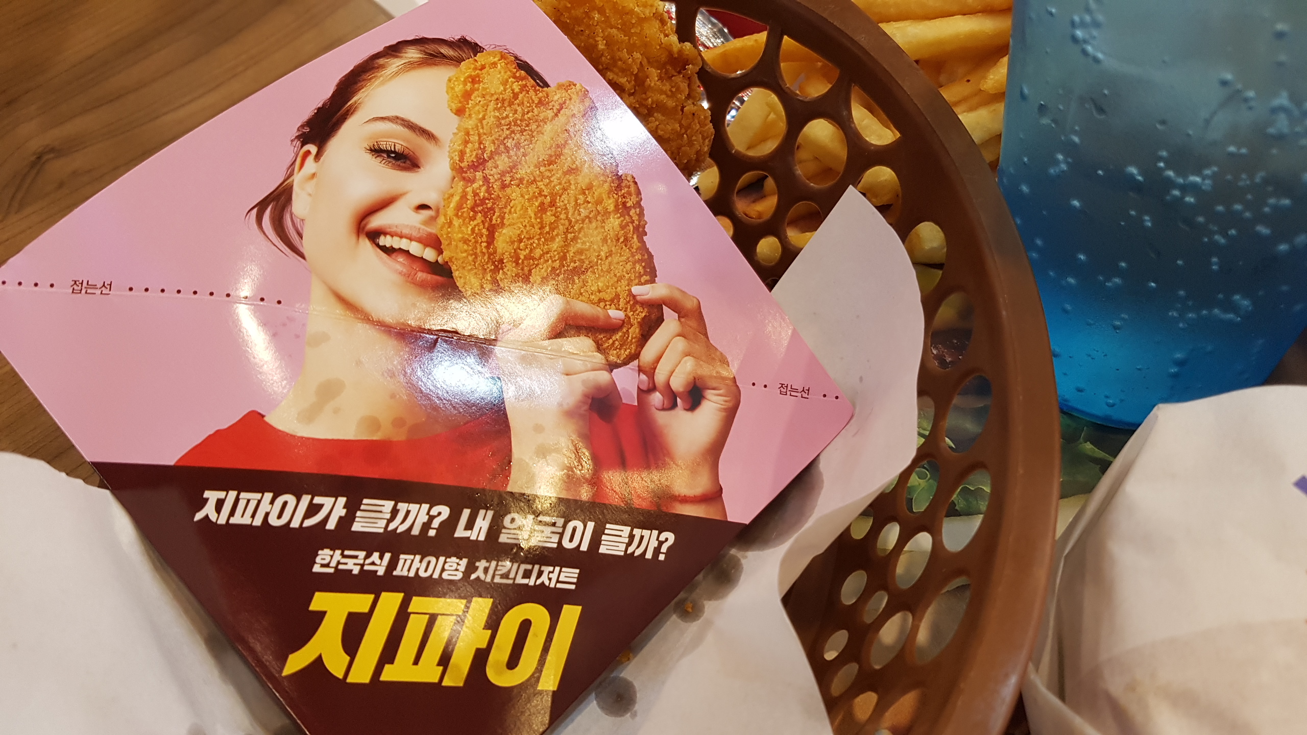 우선 지파이의 크기는 데리버거와 비교했을때 조금 더 넓은편이였고,