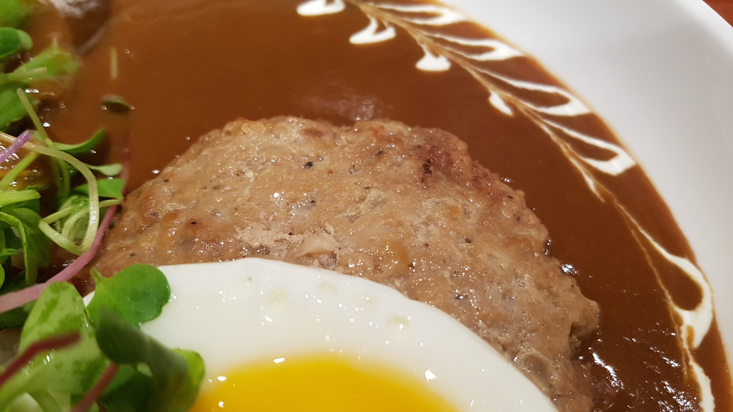 반숙 계란후라이와 함박스테이크를 달달한 카레에 찍어먹는것도