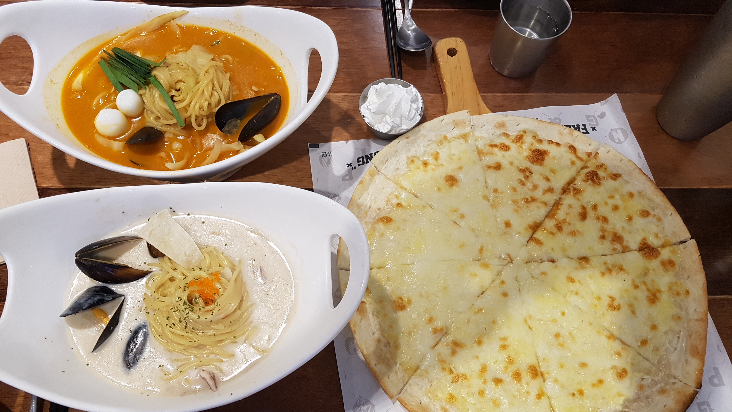 크림파스타와 짬뽕을 결합한 퓨전짬뽕, 피자등이 준비되어 있었어요