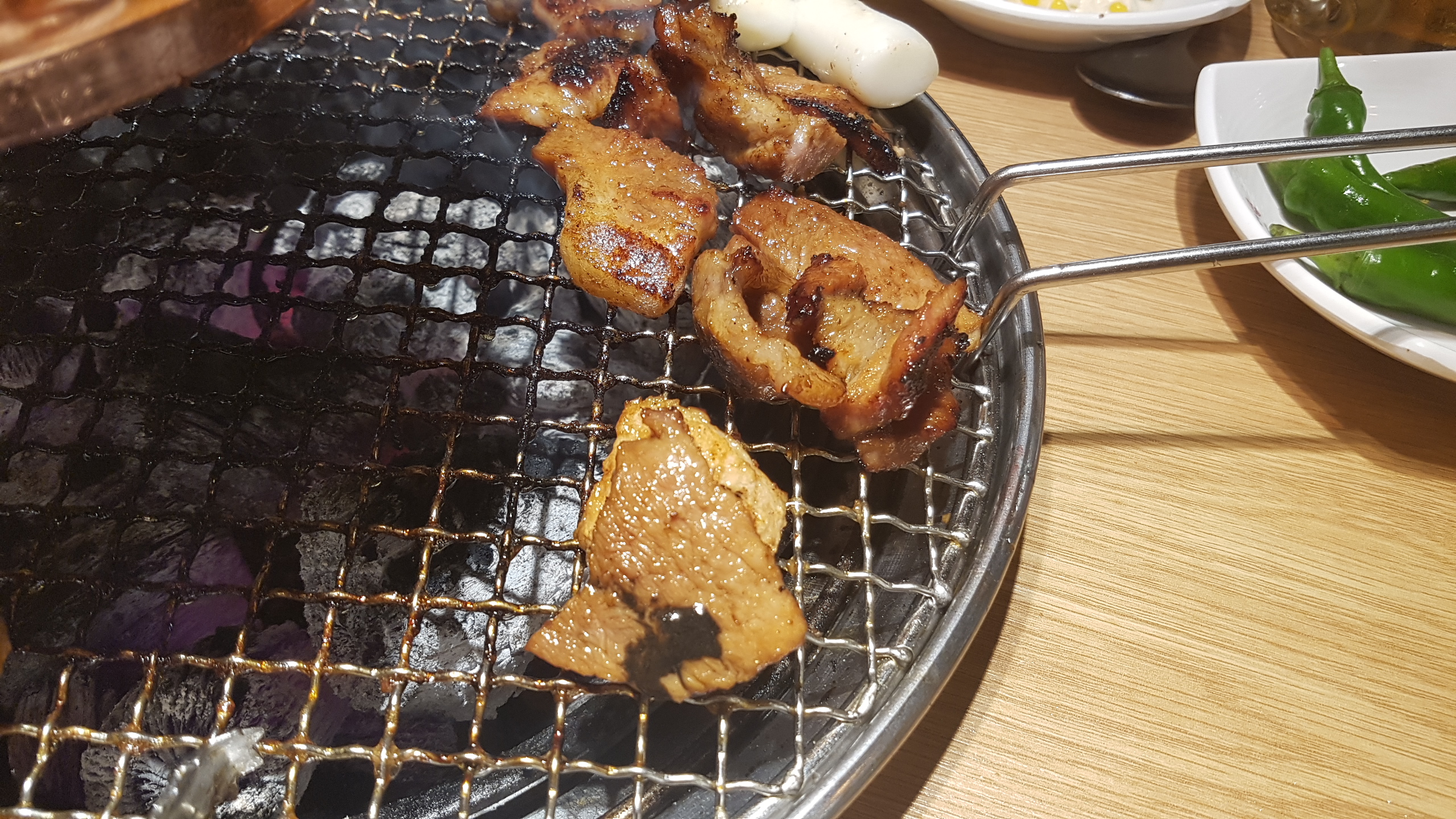 숯불에 잘 구어진 고기를 무한리필이라는 업종의 특성상 큰 기대를 하지 않고