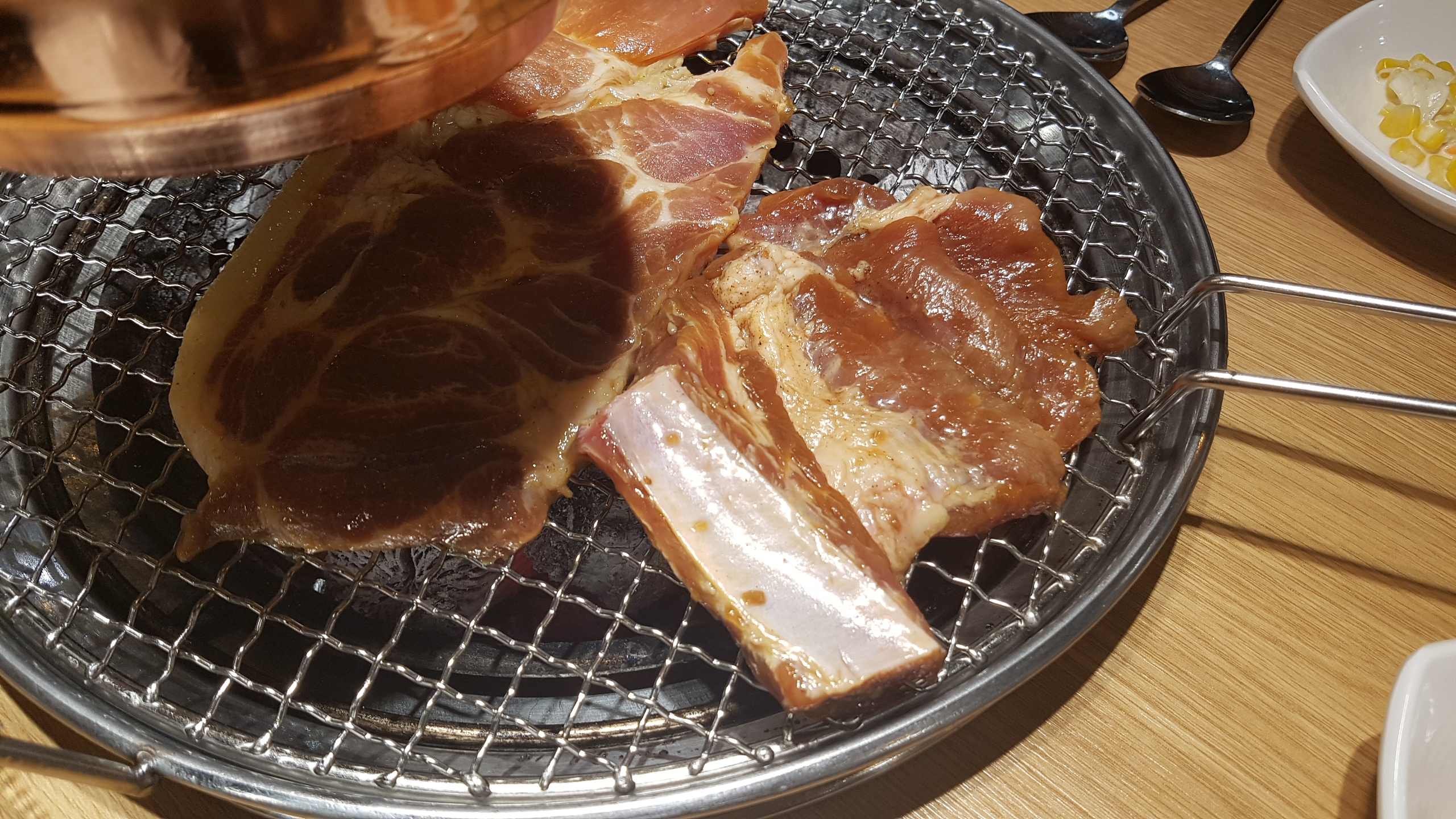 숯불에 잘 구어진 고기를 무한리필이라는 업종의 특성상 큰 기대를 하지 않고