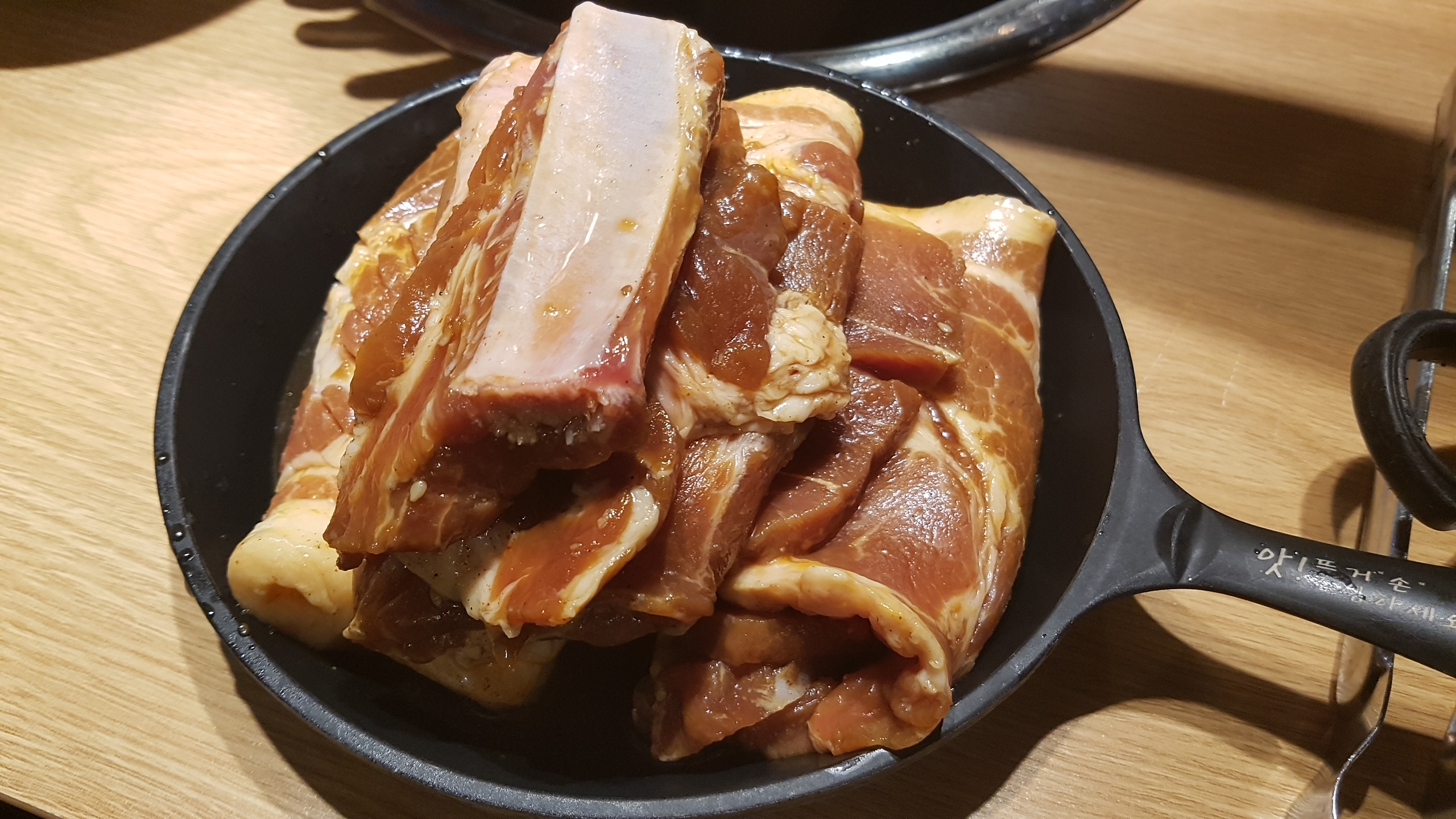 밑반찬을 먹으며 잠시 기다리고 있으니 메인메뉴인 돼지갈비를 가져다 주었다.