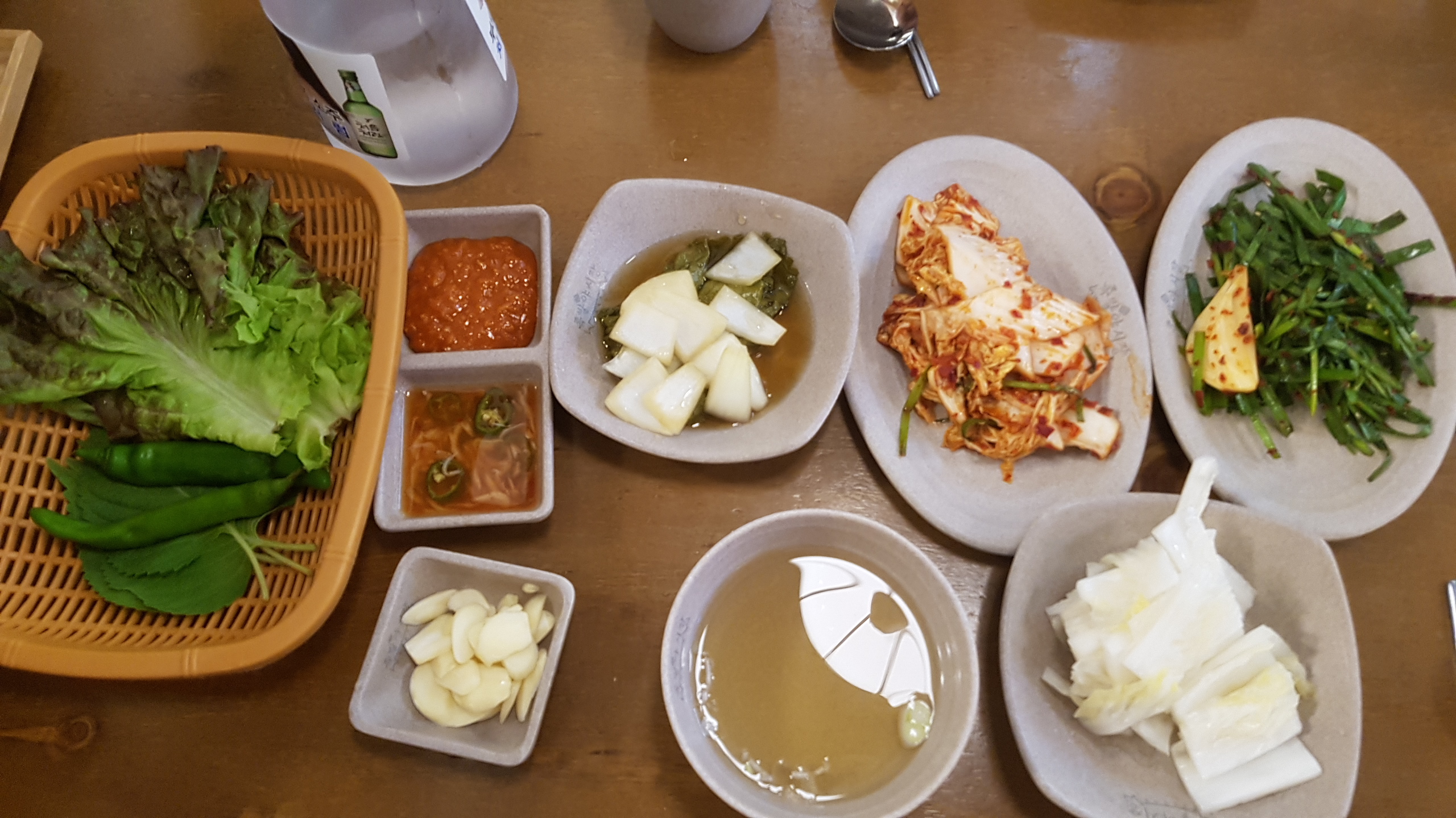 밑반찬으로 제공되는 깻잎 장아찌에 싸서 먹으면 더 맛있게 먹을수 있다.