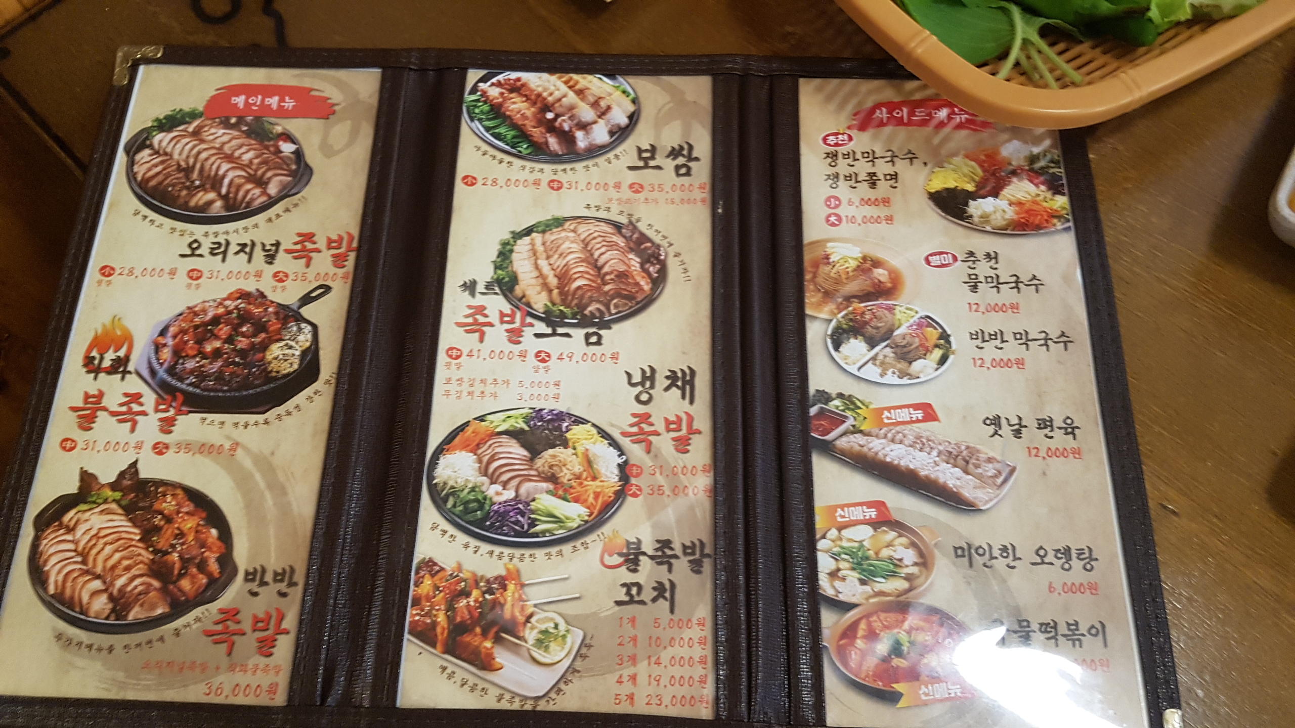 자리를 잡고 앉은 후 메뉴판을 보며 족발보쌈 세트를 주문할지, 반반족발을 주문할지