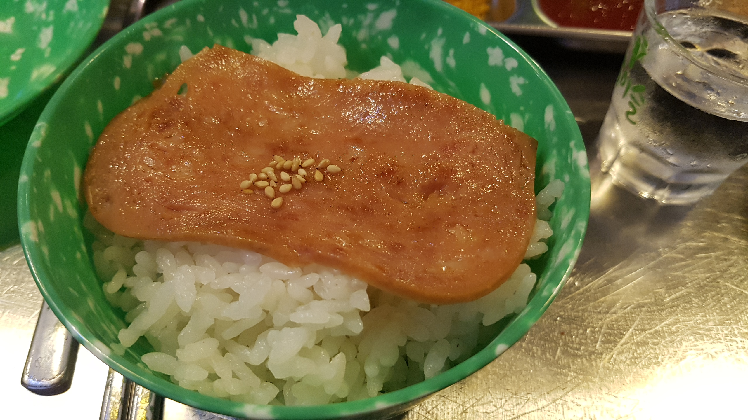 정말 별건 아니지만 아이가 먹을 공기밥에는 햄 한조각이 올라가 있었다