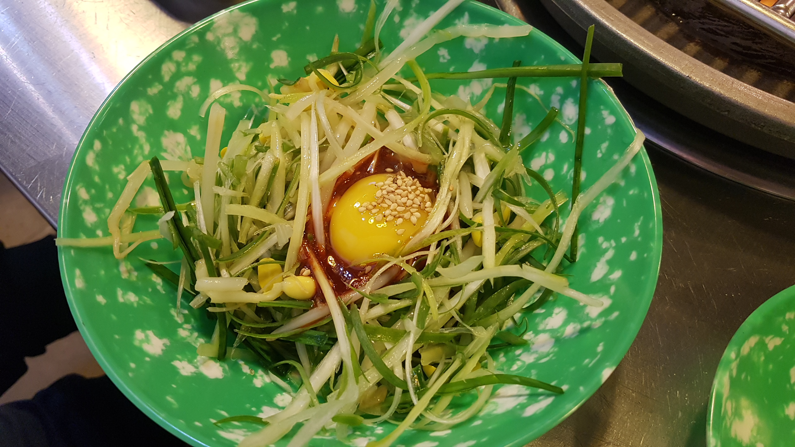 날계란에 비벼서 먹는 파무침도 특이하고,