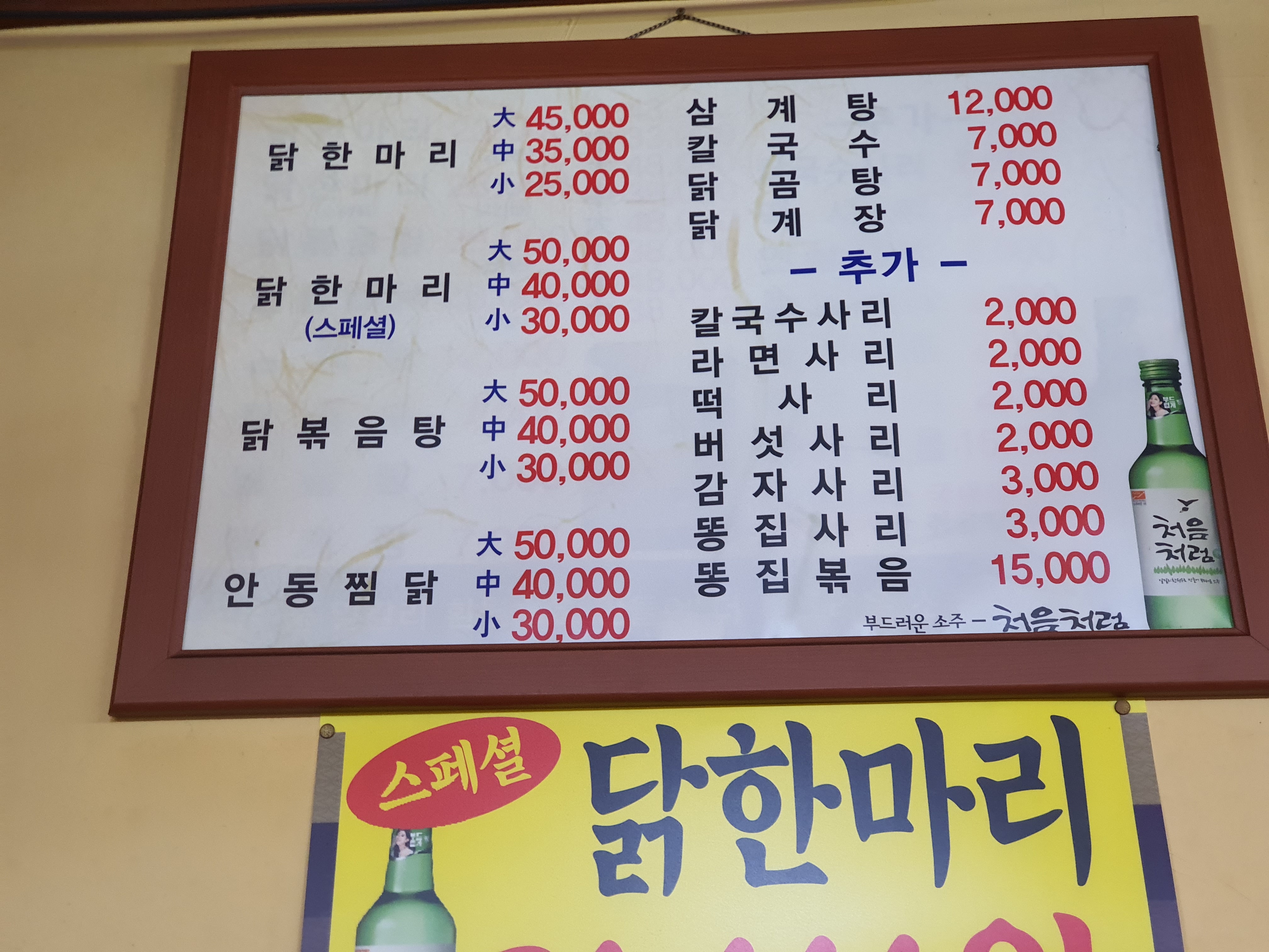 어쩔수 없이 닭한마리 대자를 주문하였다.