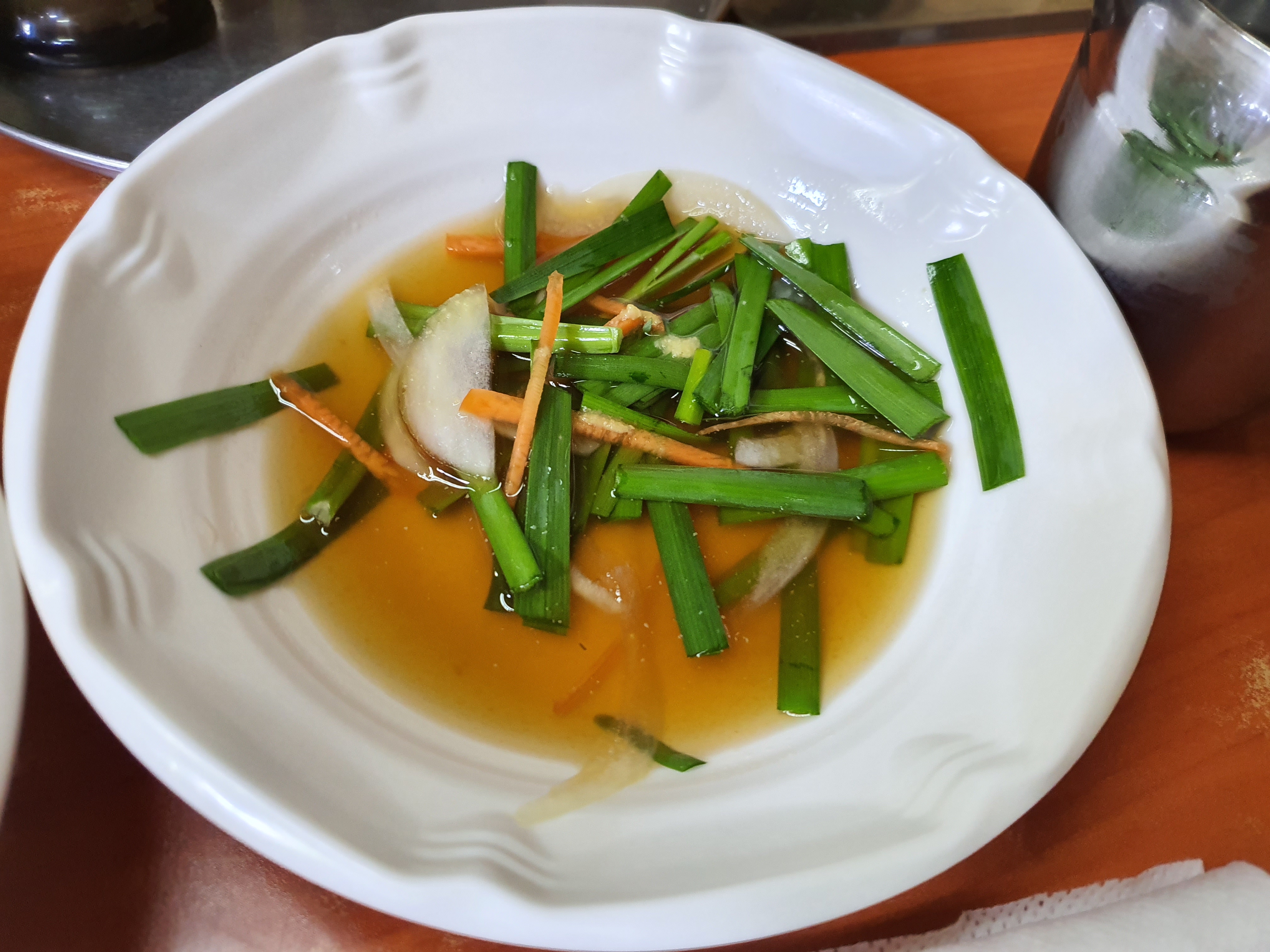 소스가 나온 후 닭똥집을 비롯하여 물김치, 깍두기, 양파와 고추가 나왔다.
