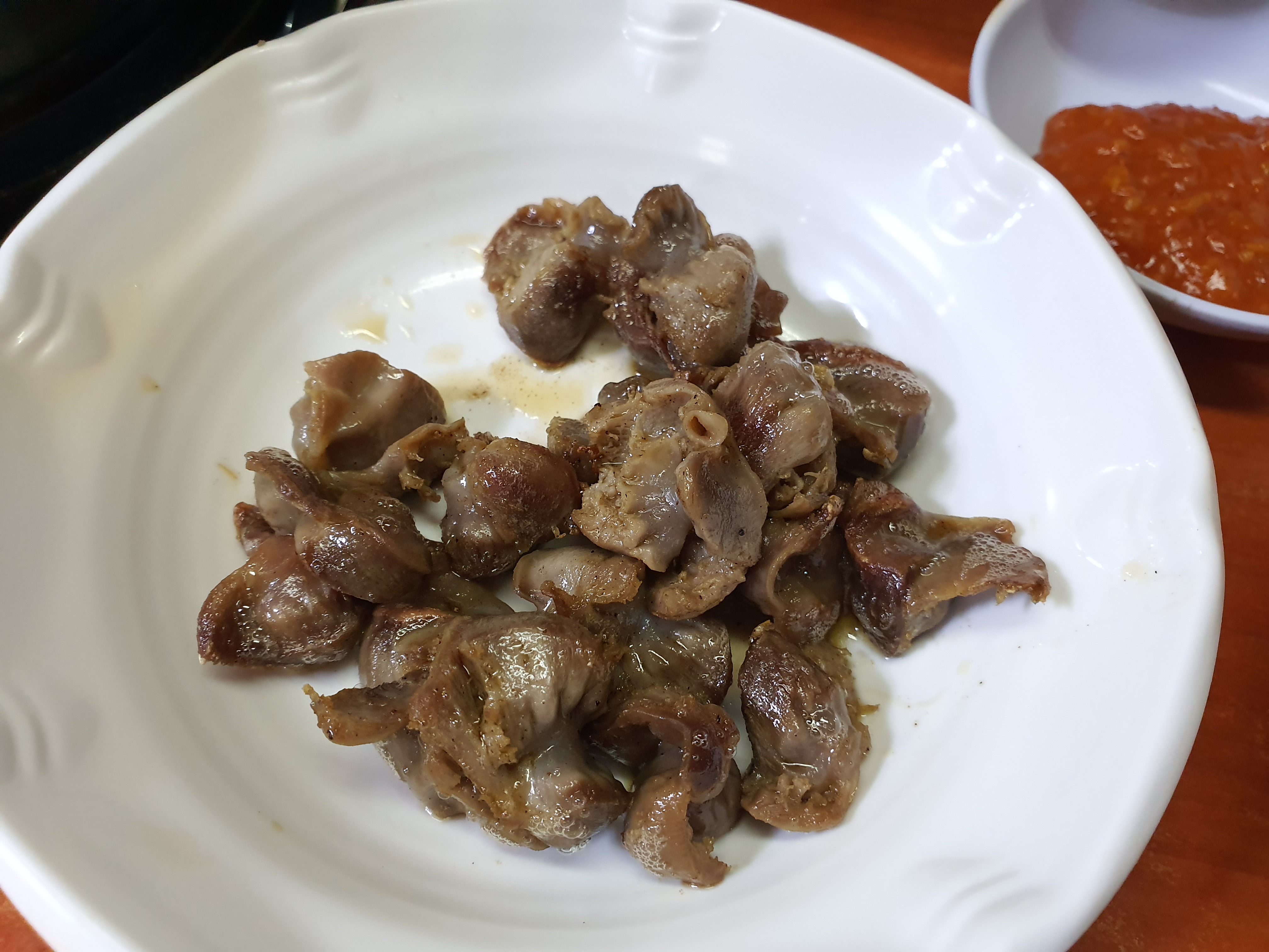 닭똥집은 소금으로 간이되어있어서 쫄긴함과 짭잘함을 느낄수 있었다.