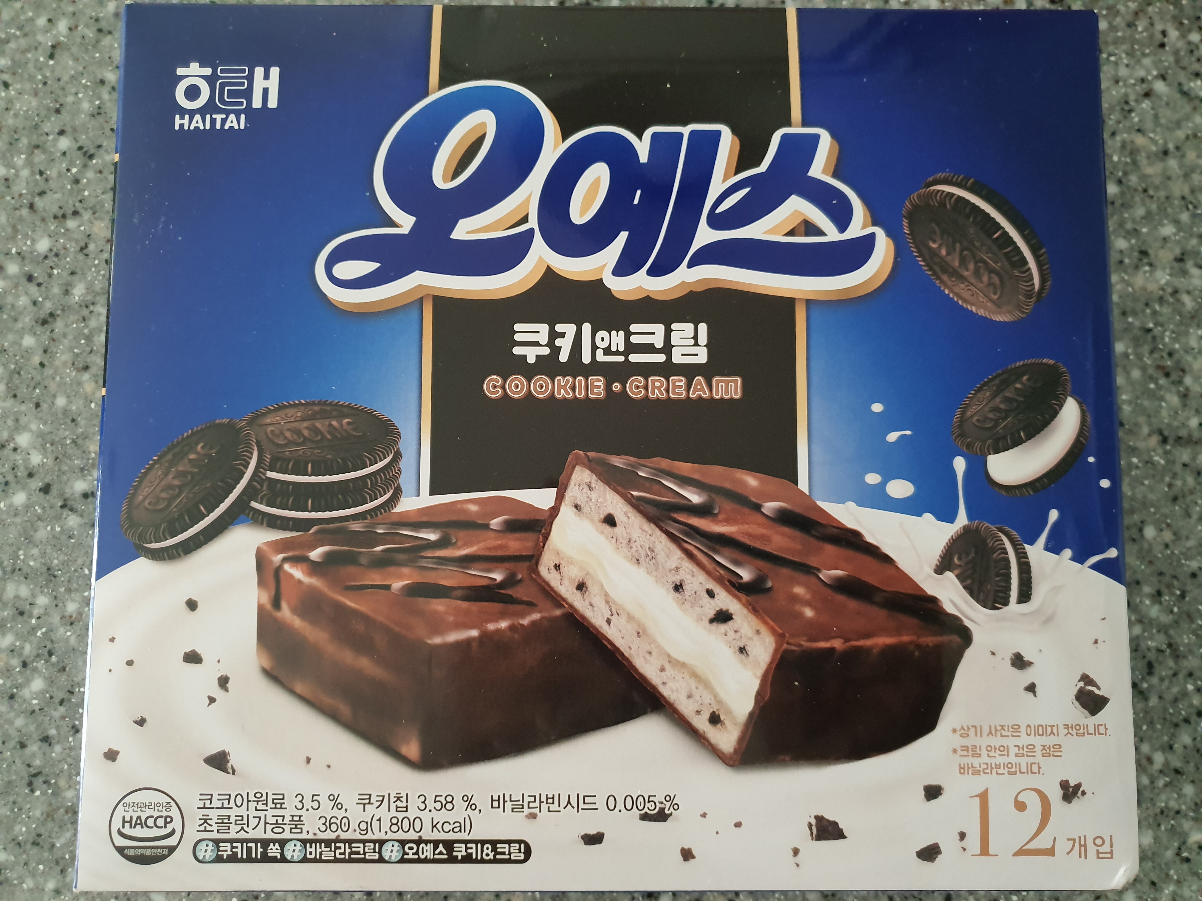 오예스 쿠키앤 크림의 Blue color 박스가